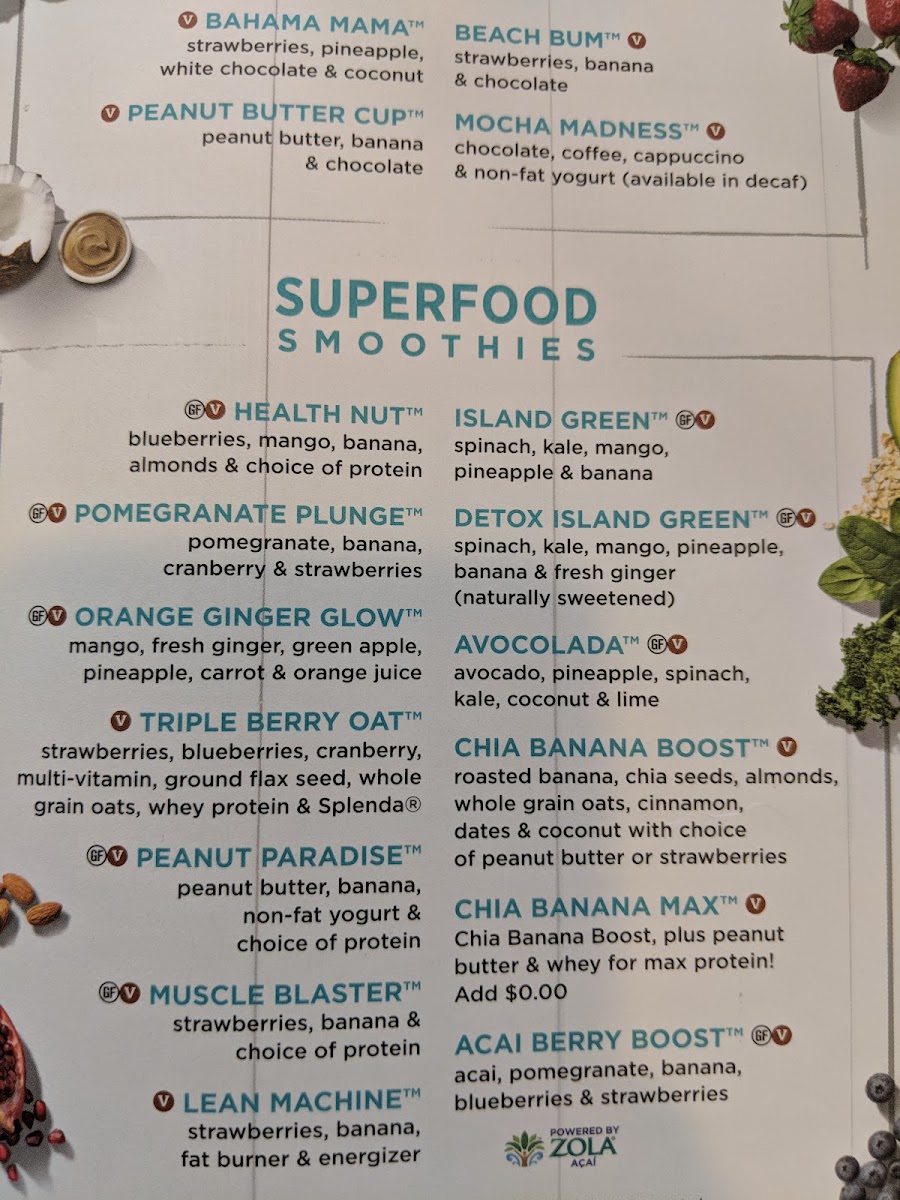 Tropical Smoothie Cafe offers a vibrant menu that expertly blends fresh, health-conscious ingredients with crave-worthy flavors. Known for its super veggie smoothies like the Island Green® and Avocolada™, each packed with nutrient-rich spinach, kale, and tropical fruits, this spot redefines what a smoothie can be. The menu extends beyond drinks to include hearty sandwiches such as the savory Turkey Bacon Ranch on ciabatta, and bright, flavorful salads like the Supergreen Caesar and Thai Chicken, each layered with fresh vegetables and thoughtfully paired dressings.